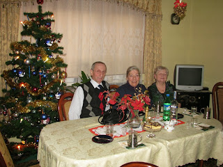 Today we had an invitation to visit with another acquaintance and his sister in Podalany, a neighborhood only 5 minutes away. We arrived at 4PM, had bigos, salad. wine, tea, coffee and then were treated to makowiec made by his sister. We were about to leave at 6PM when her husband arrived so we stayed for another hour and talked with him. As we were arriving at their house we met on the street the mother of a teenager I have known for 5 years and also had the chance to say Merry Christmas to her and her family. It seems we have now have more chances to spend holidays with non-relative people than we do my own family, a bit strange for me but that's the way it is.